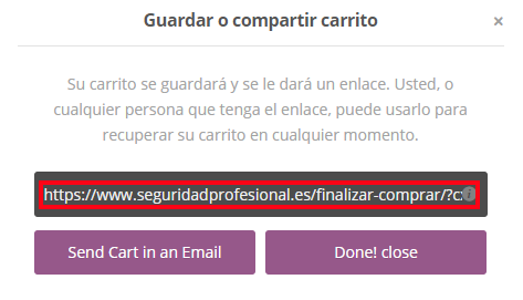 En la pagina del carrito, pulsa sobre el boton «Guardar o compartir carrito»