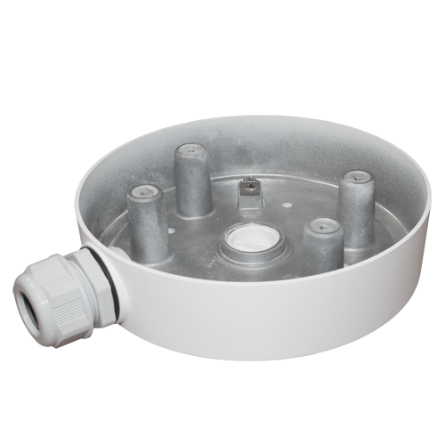 Permite alojar el alimentador, el cableado y los accesorios de la instalación en su interior. Dispone de múltiples orificios para instalación de diferentes tipos de cámaras domo o bullet. Fijación a pared o techo a través de 4 tornillos. La cámara queda instalada en la cubierta desmontable del soporte. Permite el paso interno del cableado.