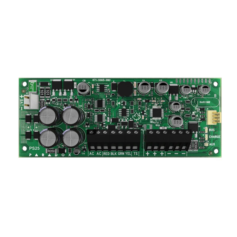 Cuando se conecta a un bus de central Paradox, proporcionará información sobre el suministro de Corriente Alterna, el voltaje de salida, la corriente y una advertencia antes de desconectar la salida auxiliar en caso de que se agote la batería. Los fallos pueden verse en BabyWare, informarse o enviarse mediante notificación push. PAR-324 (PS25) proporcionará alimentación auxiliar independientemente de la conexión del panel.